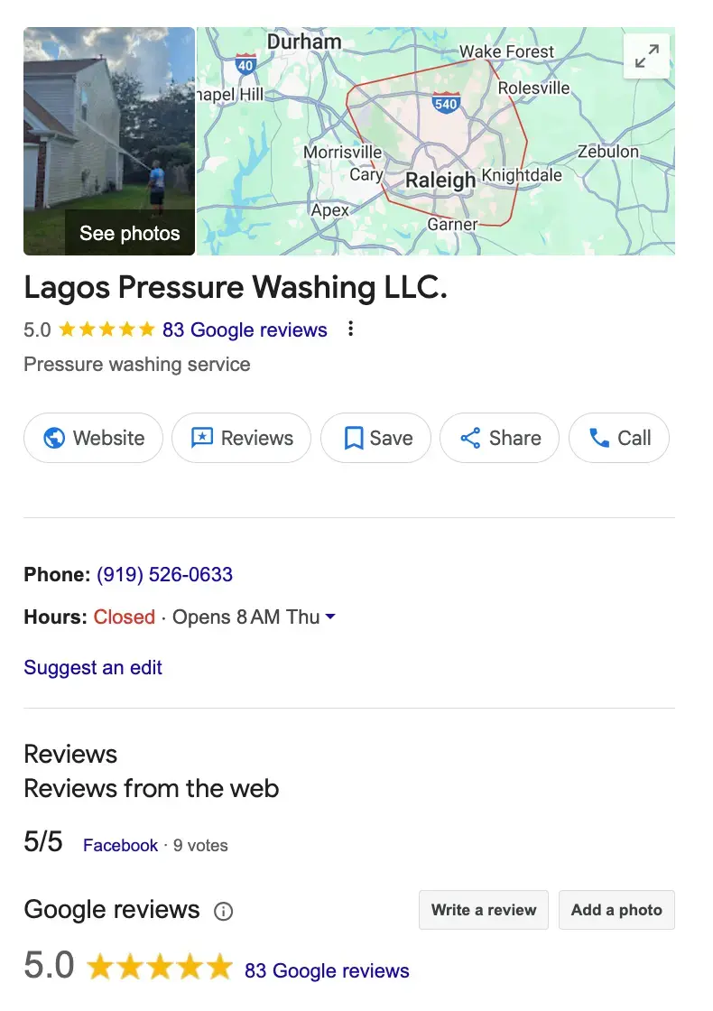 “Lagos Pressure Washing is a good local business operated by good hometown guys who grew up here in NC. Very curtious, professional and detailed when it comes to cleaning the exterior of your home. They will work with you to get you the best possible price and service in the industry. Thanks to Lagos Pressure Washing my home and driveway looks like a new again.”